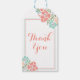 Blommig korallteal tack presentetikett