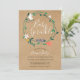 Med en vacker blommig krans av vårblommor på en rustik kraft boho bakgrund. Personifiera babyshowern, spridningen eller par shower detaljer på denna eleganta inbjudan. Med ett vårblomma mönster på baksidan