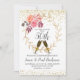 Rosa och marsala elegant blomsterkrans med guldglitter på vit bröllopsjubileumsfest inbjudan med en vit script overlay, för att fira din stora dag. Anpassa för alla jubileumsår.