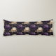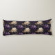 Kroppskudde visas i en vacker lila flerfärgad och svart peoniblommig tryck.
