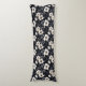 Kroppskudde visas i ett vackert blått och svart blommigt tryck.