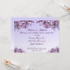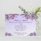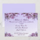 Syren är temat för denna bröllopsinbjudan. Framsidan har rosa och mauve syren på en lila bakgrund. Baksidan har mer syren. All text kan anpassas efter dina behov.
