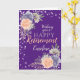 Ett elegant gratulationskort för pensionering bestående av en lila bakgrund dekorerad med vackra blommor i vattenfärg, blekrosa och lila peonyrosor, bladverk och ljusslingor. Det perfekta sättet att gratulera någon i stil på deras pensionering. Personalisera med namn och meddelande som för närvarande lyder "Allt det bästa för detta nya kapitel i ditt liv!". Perfekt för en kollega på kontoret, familj och vänner.