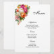 Menkortet visas med en vacker, levande färgblandning av blommor, tryckt på vitt signaturmatpapper.