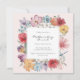 Denna vackra inbjudan till mors dags brunch presenterar handmålade akvarellvildblommor i färgglada nyanser av röd, rosa, guld och lila med en söt blå trollslända. Hitta matchande föremål i Blommig mors dag-kollektionen.