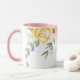 Denna blommiga mugg har vackra pastellbilder av blommor runt den övre kanten av muggen mot en vit bakgrund. Det visade innandömet är rosa. Välj din färg på innandömet för att passa din smak. Anpassa denna mugg eller köp som utformad.