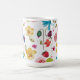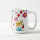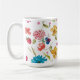 En original akvarellmålning tryckt på en mugg, fantasifulla, glada blommor och bär utspridda över denna design. Målning av Kristina Anderson
