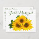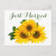 Meddela världen att du och din käresta precis gift er med detta charmiga gula solros-kort med blommotiv och texten "Just Married" på bröllopskortet.