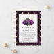 Lila, svart och guld gotiskt meddelande om reducerad bröllopsgästlista med rosor och ett spindelmönster. I dessa osäkra tider kan det hända att du måste hålla ett mindre bröllop än vad som ursprungligen planerats. Detta meddelandekort tar bort det pinsamma och tar en tyngd av din hjärna! Du kan dessutom ge ett alternativ att gå med dig på en virtuell ceremoni.