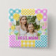 Den glada ”Bästa mamma”-designen har ett varmt foto på mamma och barn i en pastellfärgad rutig blomsterkollage. Den lapptäcksinspirerade ramen blandar gingham, prickar, rutor och mjuka blomsterdetaljer i gult, rosa, blått och lila och ger en ljus och handgjord estetik. Illustrerade rosor och botaniska detaljer ger en mjuk och feminin touch och ger designen en glad och hjärtlig stämning. Perfekt till mors dag, födelsedagar eller för att fira en verkligt speciell mamma, den här bilden kombinerar sentimentalitet med färgrik och modern charm inspirerad av lantstugan.
