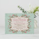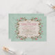 En söt design med ömtåliga rosa blommor med bruna blad och stjälkar som bildar en ram runt din personliga text. Bakgrunden är ett teal-på-teal-grunge-mönster. Perfekt för bröllopsdusch, födelsedagar eller någon feminin fest. (FP)