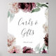 Den här skylten med blommönster är perfekt för ett elegant bröllop eller brudvisning. Den moderna rustic boho-designen har romantiska akvarellblommor i mjuka toner av burgundy, mauve, rosafärgat och krämvitt med gröna blad. Textraden längst ner på skylten kan anpassas med datumet, brudens och brudgummens namn eller ett kort meddelande som "Tack". Skylten kan användas för ett bröllop eller någon annan tillställning eller fest.