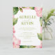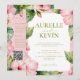 Blommig Rosa Grön Sommar Watercolor QRkod Bröllop Inbjudningar