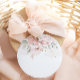 Blommig rosa Mimosa bar tomma juice etiketter. Matchande artiklar finns tillgängliga.