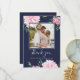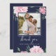 Blommig Rosa Peony Botanisk Foto Elegant Marinblå Tack Kort