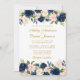 Elegant Vattenfärg Rosa Rodnad Blå Blommig Bröllop Guld Inbjudningskort - Rundade Kanter