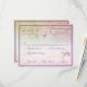 Det här är ett svarsbrev som kan bifogas inbjudan till Blommig bröllop ovan molnen. Kortet visas i rosa med mauvefärgade accenter.