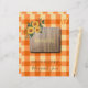Anpassad text kapitelseparator sida för rustik landsbygd stil recept arrangör mapp med solrosbukett och naturligt trä över en trendig rostig orange gul terrakotta randig gingham mönster. +++++++++++ Personifiera det med din text (recept kategori titel) och ditt familjenamn och monogram / namn initial!
