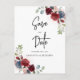 Blommig Script Burgunder Röd Bröllop Spara Datum Meddelande Vykort