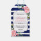 Blommig Silver Marinblå Rand Bröllopsdusch Tack Presentetikett
