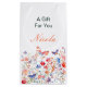 Söt liten presentpåse för bröllopsdusch med färgglade blommor i rosa, lila och orange, fjärilar och lövverk. Perfekt för en vår- eller sommarbröllopsdusch. Orden kan ändras för att passa dina egna detaljer eller krav.
