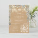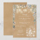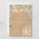 Vackra strängljus, murade krukor och en kaskad av vacker blomstergrönska inramar detaljerna på din speciella bröllopsfirande, satta i elegant typografi på en rustik kraftbakgrund. Designad av Thisisnotme