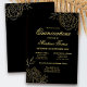 Blommig Svart Guld Fin Konstart Quinceanera och Mä Inbjudningar