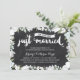 Denna eleganta, moderna 10-årsdagsinbjudan har vacker penselskrift kalligrafi, vackra blå och vita blommor, typografi som lyder "Just nyss gifta (för tio år sedan!)", och en rustik svart tavla-bakgrund.