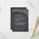 Handritad utsmyckad blommig design på svart tavla bakgrund, sofistikerad och elegant, perfekt för landlig, rustik bröllop; eller ett vintagebröllop på vintern. Neutral färgskala, svart och vitt med lite guld taupe. Anpassad bröllopskort för din bekvämlighet.
