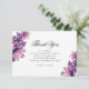 Blommig tack. Lila bröllop. Blommor notera Tack Kort