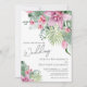 Modern blomster botanisk palm tropisk bröllopsinbjudan.