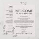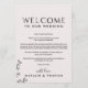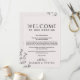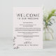 Dessa blommiga typografi välkomstbrev och programkort är perfekta för ett elegant bröllop. Den romantiska designen har enkel bokstavsstil dekorerad med blommor, botanisk kant och en subtil rosa bakgrund. Framsidan av kortet har ett välkomstbrev och baksidan av kortet har bröllopsprogrammet. Dessa anteckningar är perfekta för destination bröllop och välkomstpaket för hotellgäster.