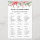Gör din bröllopsfest både rolig och interaktiv med vårt Watercolor Pink Floral "Vad har du i handväskan?" bröllopsspel. Designat med ömtåliga akvarellblommor och en romantisk estetik, uppmuntrar detta klassiska spel gästerna att rota i sina handväskor och tjäna poäng för de föremål de bär med sig, vilket tillför skratt, vänlig konkurrens och massor av överraskningar till din fest. Perfekt för att bryta isen, håller detta enkla spel gästerna engagerade medan de räknar poäng för vardagliga nödvändigheter och oväntade fynd. Gästen med högst poäng vinner ett pris, vilket gör det till en lättsam och minnesvärd aktivitet som alla kan njuta av. Dess eleganta blomdesign kompletterar ett brett spektrum av