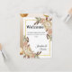 Välkommen era gäster med detta eleganta blommande bröllopskort med mjuka akvarellrosor, förgyllda ramaccent och varma neutrala toner. Perfekt för visning vid bröllopsentré, mottagning eller välkomststation, ger denna design en touch av sofistikering till din fest.