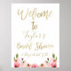 Elegant bröllopsfest välkomstskylt med falskt guld folie kalligrafi med rosa akvarellrosor. Bröllopsinbjudan med samma design finns också tillgänglig i butiken.