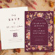 Elegant vildblomsvalv i burgunderröd, bränd orange, terrakotta och beige höstbröllopsinbjudan med QR-kod för webbsida för online-svar. Denna förtrollande boho-chica blommiga bröllopsinbjudan är en fantastisk blandning av höstlig värme och elegant charm. Med handmålade, akvarell-vildblommor runt en elegant valvdesign visar inbjudan en rik färgpalett av burgunderröd, bränd orange, bränd umber, korall, orange, brun, gul, grön, terrakotta, korall, lila och rosa. De varma jordnära hösttonerna skapar en perfekt harmoni, vilket gör den till ett idealiskt val för ett höstbröllop. Den eleganta skriften och den moderna typografin ger en touch av sofistikering, medan de lekfulla vildblomsakvarellerna runt valvväxlingen ger en personlig, bohemisk touch till alla dina viktiga bröllopsdetaljer. Designad av den begåvade konstnären Catherine Sweetman, förkroppsligar denna unika inbjudan andan av en mysig, intim fest i höstens hjärta. Med lätt-anpassningsbara mallar erbjuder den ett smidigt sätt att förmedla din bröllopsinformation med stil och