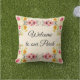 Välkommen gäster till din veranda med denna vackra rosa blommiga kudde. Denna kudde skapades från en söt pastell vattenfärgskant. Personifiera denna kudde med dina egna ord eller köp som den ser ut med "Välkommen till vår veranda" på framsidan och "Hem ljuva hem" på baksidan