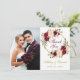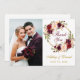 Vattenfärg vinröd Marsala blommig krans guld bröllopsfoto tack kort