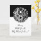 Vill du vara min brudtärna förslags kort. Svart och vit blommig yin yang.
