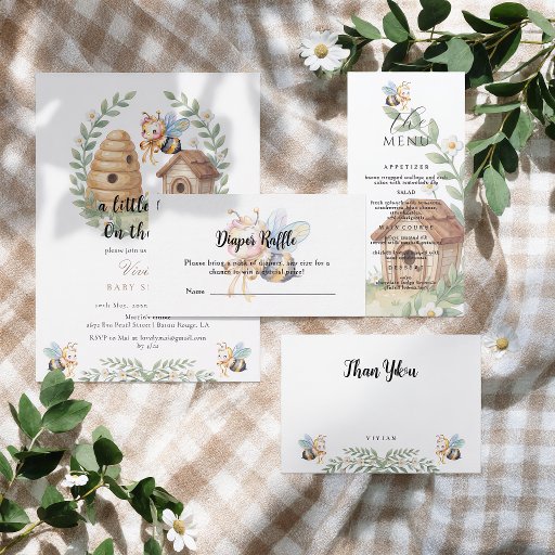 Floral Beehives and little Bee Baby ShowerDesignad av Glory Silver Thread