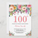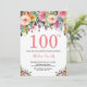 Blommigt 100:e födelsedagsinbjudan Rosa Inbjudningar