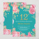 Blommigt 12:e födelsedag Guld Glitter och Teal Inbjudningar