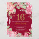 Blommigt 16:e födelsedag Guld Burgundy Red Inbjudningar