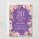 Blommigt 20:e födelsedag Lila Violet Rosa Flowers Inbjudningar