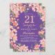 Blommigt 21:a födelsedag Lila för Rosa Flowers Inbjudningar