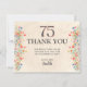 Ett hjärtligt tack för det här tackkortet för 75:e-födelsedag i elegant, med en fetstilt "75"-kort för mjuka vattenfärgade vilda blommor. Designat i en pastellpalett med chic med blommigtens skriptaccenter är detta keepsakkort perfekt för en sofistikerad och minnesvärd milstolpe firande. Njut!