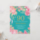 Blommigt 90:e födelsedagen Guld Glitter och Teal Inbjudningar
