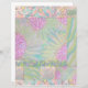 Fina blommor framställs i denna abstrakt av konstverk med olika tryckningar och mönster i liknande färg, vilket ger ett bra exempel på blandade medier.