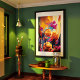 Blommigt Abstrakt Art Orange Red Blåa blommor Poster