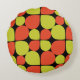 Denna runda kudde har en abstrakt blomma eller mönster i färg i contemporary av levande orange och grönt som bygger på liknande Modern motiv från 1950-, 1960- och till och med i tidigt 1970-talet.
